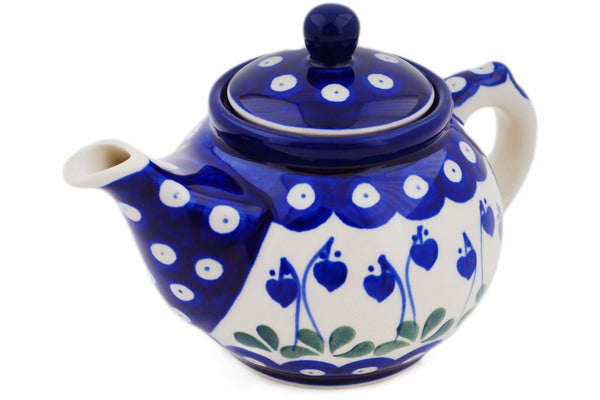 This Bleeding Heart Peacock 13 oz Tea or Coffee Pot was handmade and hand decorated in Boleslawiec, Poland by skilled artisans according to old traditional methods. This Polish stoneware is microwave, dishwasher, freezer, and oven safe up to 480°F. It does not contain lead or cadmium. It is part of the Bleeding Heart Peacock Collection.