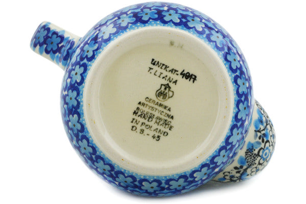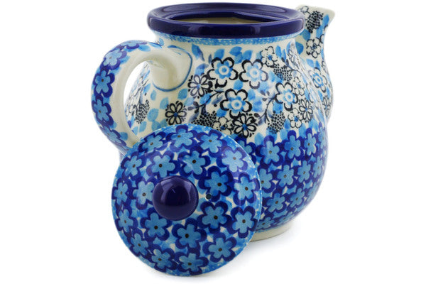This Out Of Blue 20 oz Tea or Coffee Pot was handmade and hand decorated in Boleslawiec, Poland by skilled artisans according to old traditional methods. This is a Polish pottery Signature Unikat, which means that it has been hand painted with both sponges and brushes and it is signed by the artist who painted it. Unikat pieces are the most intricate works of art. Larger Unikat items take hours of very careful work to finish. This Polish stoneware is microwave, dishwasher, freezer, and oven safe up to 480°F. It does not contain lead or cadmium. It is part of the Out Of Blue Collection.