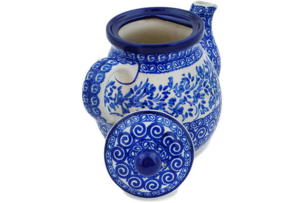 This Wreath Of Blue 20 oz Tea or Coffee Pot was handmade and hand decorated in Boleslawiec, Poland by skilled artisans according to old traditional methods. This is a Polish pottery Signature Unikat, which means that it has been hand painted with both sponges and brushes and it is signed by the artist who painted it. Unikat pieces are the most intricate works of art. Larger Unikat items take hours of very careful work to finish. This Polish stoneware is microwave, dishwasher, freezer, and oven safe up to 480°F. It does not contain lead or cadmium. It is part of the Wreath Of Blue Collection.