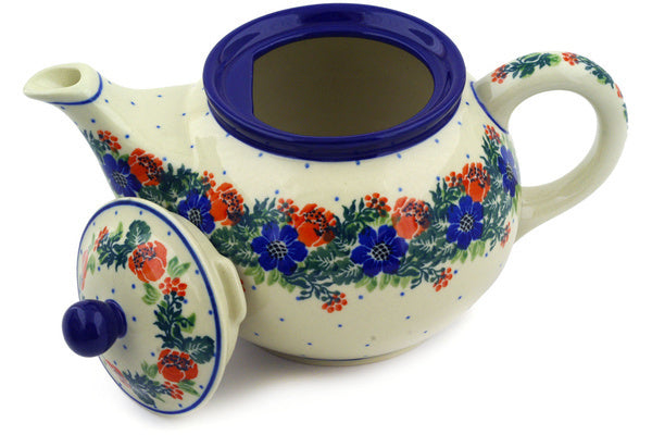 This Polish Wreath 3½ cups Tea or Coffee Pot was handmade and hand decorated in Boleslawiec, Poland by skilled artisans according to old traditional methods. This Polish stoneware is microwave, dishwasher, freezer, and oven safe up to 480°F. It does not contain lead or cadmium. It is part of the Polish Wreath Collection.