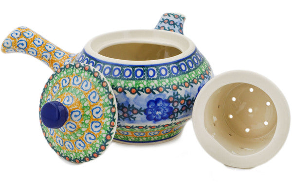 Tea Pot with Sifter 15 oz Blue Poppy Circle Theme UNIKAT