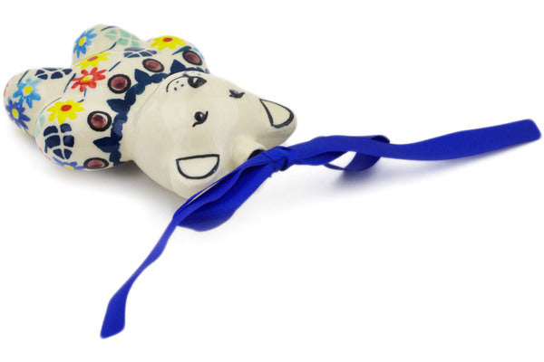 This Primary Spring 3" Teddy Bear Ornament was handmade and hand decorated in Boleslawiec, Poland by skilled artisans according to old traditional methods. This is a Polish pottery Signature Unikat, which means that it has been hand painted with both sponges and brushes and it is signed by the artist who painted it. Unikat pieces are the most intricate works of art. Larger Unikat items take hours of very careful work to finish. This Polish stoneware is microwave, dishwasher, freezer, and oven safe up to 480°F. It does not contain lead or cadmium. It is part of the Primary Spring Collection.