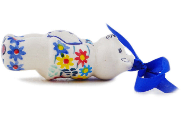 This Primary Spring 4" Teddy Bear Ornament was handmade and hand decorated in Boleslawiec, Poland by skilled artisans according to old traditional methods. This is a Polish pottery Signature Unikat, which means that it has been hand painted with both sponges and brushes and it is signed by the artist who painted it. Unikat pieces are the most intricate works of art. Larger Unikat items take hours of very careful work to finish. This Polish stoneware is microwave, dishwasher, freezer, and oven safe up to 480°F. It does not contain lead or cadmium. It is part of the Primary Spring Collection.