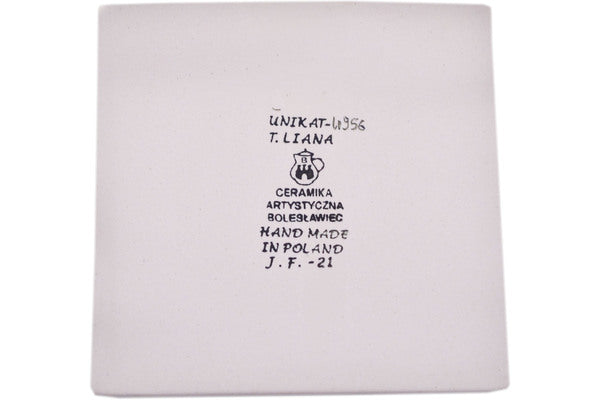 This Savvy Scarlet 4" Tile was handmade and hand decorated in Boleslawiec, Poland by skilled artisans according to old traditional methods. This is a Polish pottery Signature Unikat, which means that it has been hand painted with both sponges and brushes and it is signed by the artist who painted it. Unikat pieces are the most intricate works of art. Larger Unikat items take hours of very careful work to finish. This Polish stoneware is microwave, dishwasher, freezer, and oven safe up to 480°F. It does not contain lead or cadmium. It is part of the Savvy Scarlet Collection.
