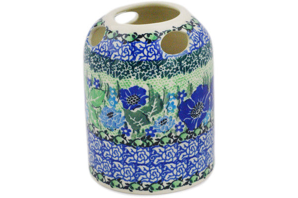 This Moody Blues 4" Toothbrush Holder was handmade and hand decorated in Boleslawiec, Poland by skilled artisans according to old traditional methods. This is a Polish pottery Signature Unikat, which means that it has been hand painted with both sponges and brushes and it is signed by the artist who painted it. Unikat pieces are the most intricate works of art. Larger Unikat items take hours of very careful work to finish. This Polish stoneware is microwave, dishwasher, freezer, and oven safe up to 480°F. It does not contain lead or cadmium. It is part of the Moody Blues Collection.