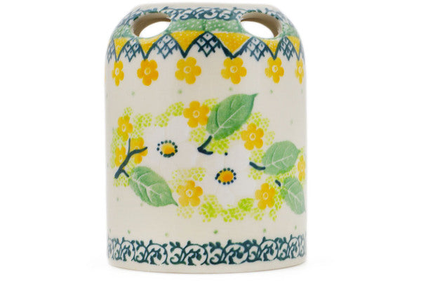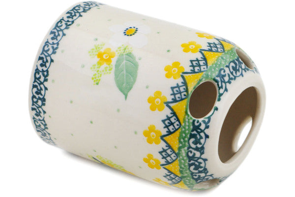 This Spring On The Branch 4" Toothbrush Holder was handmade and hand decorated in Boleslawiec, Poland by skilled artisans according to old traditional methods. This is a Polish pottery Signature Unikat, which means that it has been hand painted with both sponges and brushes and it is signed by the artist who painted it. Unikat pieces are the most intricate works of art. Larger Unikat items take hours of very careful work to finish. This Polish stoneware is microwave, dishwasher, freezer, and oven safe up to 480°F. It does not contain lead or cadmium. It is part of the Spring On The Branch Collection.