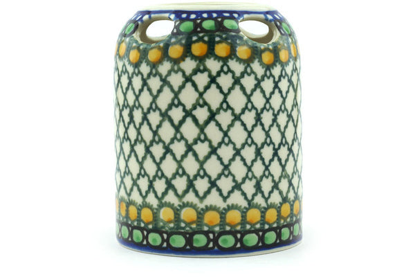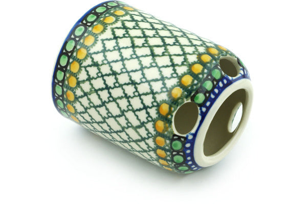 This Tranquility 4" Toothbrush Holder was handmade and hand decorated in Boleslawiec, Poland by skilled artisans according to old traditional methods. This is a Polish pottery Signature Unikat, which means that it has been hand painted with both sponges and brushes and it is signed by the artist who painted it. Unikat pieces are the most intricate works of art. Larger Unikat items take hours of very careful work to finish. This Polish stoneware is microwave, dishwasher, freezer, and oven safe up to 480°F. It does not contain lead or cadmium. It is part of the Tranquility Collection.