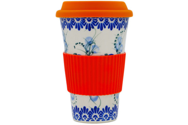 This Blue Wildflower 6" Travel Coffee Mug with Muliticolor Sleeve was handmade and hand decorated in Boleslawiec, Poland by skilled artisans according to old traditional methods. This is a Polish pottery Signature Unikat, which means that it has been hand painted with both sponges and brushes and it is signed by the artist who painted it. Unikat pieces are the most intricate works of art. Larger Unikat items take hours of very careful work to finish. This Polish stoneware is microwave, dishwasher, freezer, and oven safe up to 480°F. It does not contain lead or cadmium. It is part of the Blue Wildflower Collection.