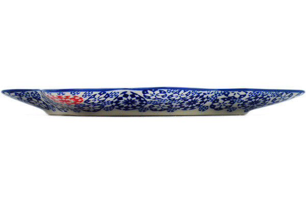 This Bullseye 9" Tray was handmade and hand decorated in Boleslawiec, Poland by skilled artisans according to old traditional methods. This is a Polish pottery Signature Unikat, which means that it has been hand painted with both sponges and brushes and it is signed by the artist who painted it. Unikat pieces are the most intricate works of art. Larger Unikat items take hours of very careful work to finish. This Polish stoneware is microwave, dishwasher, freezer, and oven safe up to 480°F. It does not contain lead or cadmium. It is part of the Bullseye Collection.