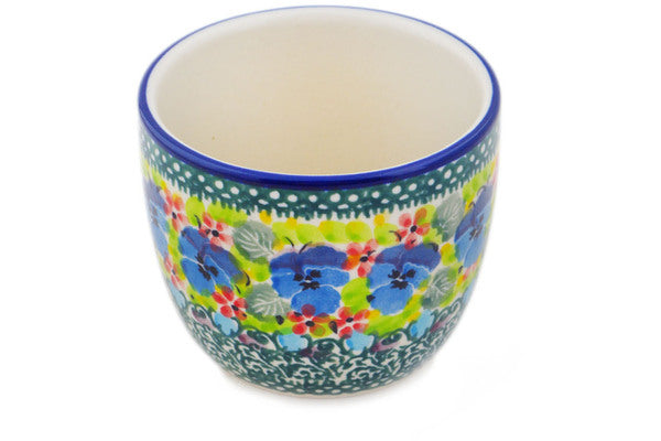 This Pretty Pansies 6 oz Tumbler was handmade and hand decorated in Boleslawiec, Poland by skilled artisans according to old traditional methods. This is a Polish pottery Signature Unikat, which means that it has been hand painted with both sponges and brushes and it is signed by the artist who painted it. Unikat pieces are the most intricate works of art. Larger Unikat items take hours of very careful work to finish. This Polish stoneware is microwave, dishwasher, freezer, and oven safe up to 480°F. It does not contain lead or cadmium. It is part of the Pretty Pansies Collection.