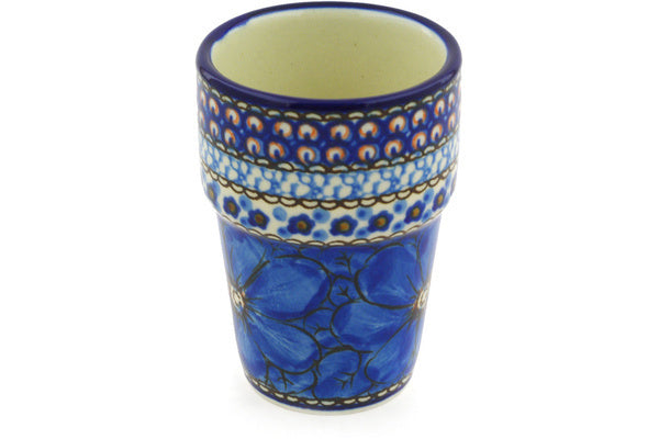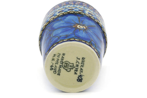 This Cobalt Poppies 7 oz Tumbler was handmade and hand decorated in Boleslawiec, Poland by skilled artisans according to old traditional methods. This is a Polish pottery Signature Unikat, which means that it has been hand painted with both sponges and brushes and it is signed by the artist who painted it. Unikat pieces are the most intricate works of art. Larger Unikat items take hours of very careful work to finish. This Polish stoneware is microwave, dishwasher, freezer, and oven safe up to 480°F. It does not contain lead or cadmium. It is part of the Cobalt Poppies Collection.