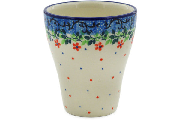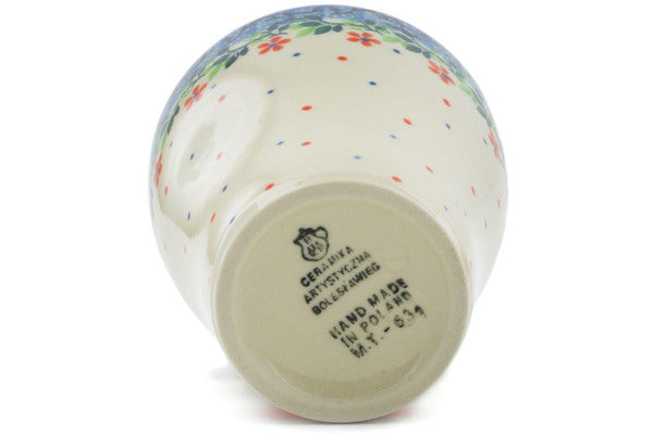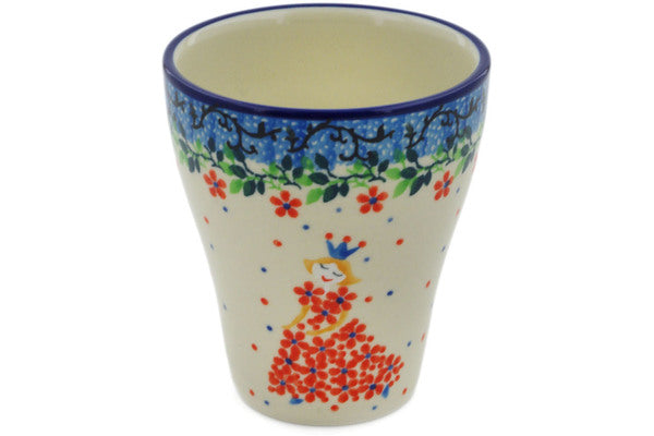 This Princess In A Red Dress 7 oz Tumbler was handmade and hand decorated in Boleslawiec, Poland by skilled artisans according to old traditional methods. This Polish stoneware is microwave, dishwasher, freezer, and oven safe up to 480°F. It does not contain lead or cadmium. It is part of the Princess In A Red Dress Collection.