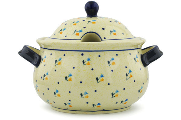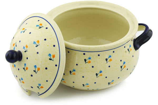 This Polka Dot Tulips 101 oz Tureen was handmade and hand decorated in Boleslawiec, Poland by skilled artisans according to old traditional methods. This Polish stoneware is microwave, dishwasher, freezer, and oven safe up to 480°F. It does not contain lead or cadmium. It is part of the Polka Dot Tulips Collection.