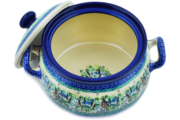 This Lavender Meadow 122 oz Tureen was handmade and hand decorated in Boleslawiec, Poland by skilled artisans according to old traditional methods. This is a Polish pottery Signature Unikat, which means that it has been hand painted with both sponges and brushes and it is signed by the artist who painted it. Unikat pieces are the most intricate works of art. Larger Unikat items take hours of very careful work to finish. This Polish stoneware is microwave, dishwasher, freezer, and oven safe up to 480°F. It does not contain lead or cadmium. It is part of the Lavender Meadow Collection.