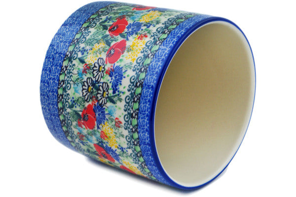 This Polish Garden 5" Utensil Jar was handmade and hand decorated in Boleslawiec, Poland by skilled artisans according to old traditional methods. This is a Polish pottery Signature Unikat, which means that it has been hand painted with both sponges and brushes and it is signed by the artist who painted it. Unikat pieces are the most intricate works of art. Larger Unikat items take hours of very careful work to finish. This Polish stoneware is microwave, dishwasher, freezer, and oven safe up to 480°F. It does not contain lead or cadmium. It is part of the Polish Garden Collection.