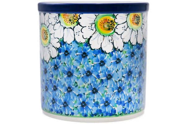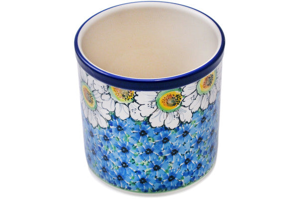 This Pansies And Daisies 6" Utensil Jar was handmade and hand decorated in Boleslawiec, Poland by skilled artisans according to old traditional methods. This is a Polish pottery Signature Unikat, which means that it has been hand painted with both sponges and brushes and it is signed by the artist who painted it. Unikat pieces are the most intricate works of art. Larger Unikat items take hours of very careful work to finish. This Polish stoneware is microwave, dishwasher, freezer, and oven safe up to 480°F. It does not contain lead or cadmium. It is part of the Pansies And Daisies Collection.