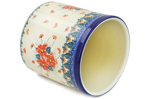 This Pink Forget Me Not 6" Utensil Jar was handmade and hand decorated in Boleslawiec, Poland by skilled artisans according to old traditional methods. This is a Polish pottery Signature Unikat, which means that it has been hand painted with both sponges and brushes and it is signed by the artist who painted it. Unikat pieces are the most intricate works of art. Larger Unikat items take hours of very careful work to finish. This Polish stoneware is microwave, dishwasher, freezer, and oven safe up to 480°F. It does not contain lead or cadmium. It is part of the Pink Forget Me Not Collection.