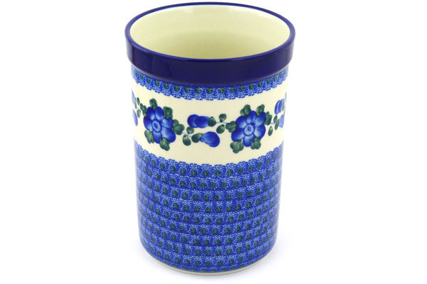 This Blue Poppies 8" Utensil Jar was handmade and hand decorated in Boleslawiec, Poland by skilled artisans according to old traditional methods. This Polish stoneware is microwave, dishwasher, freezer, and oven safe up to 480°F. It does not contain lead or cadmium. It is part of the Blue Poppies Collection.