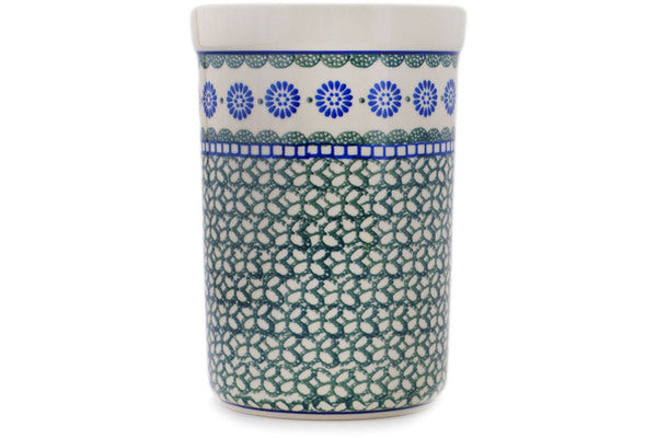 This Maia 8" Utensil Jar was handmade and hand decorated in Boleslawiec, Poland by skilled artisans according to old traditional methods. This Polish stoneware is microwave, dishwasher, freezer, and oven safe up to 480°F. It does not contain lead or cadmium. It is part of the Maia Collection.