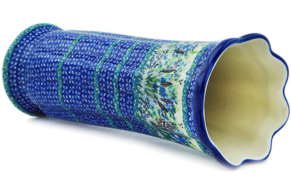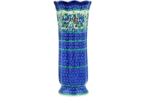 This Lavender Meadow 11" Vase was handmade and hand decorated in Boleslawiec, Poland by skilled artisans according to old traditional methods. This is a Polish pottery Signature Unikat, which means that it has been hand painted with both sponges and brushes and it is signed by the artist who painted it. Unikat pieces are the most intricate works of art. Larger Unikat items take hours of very careful work to finish. This Polish stoneware is microwave, dishwasher, freezer, and oven safe up to 480°F. It does not contain lead or cadmium. It is part of the Lavender Meadow Collection.