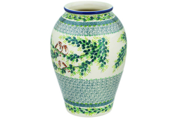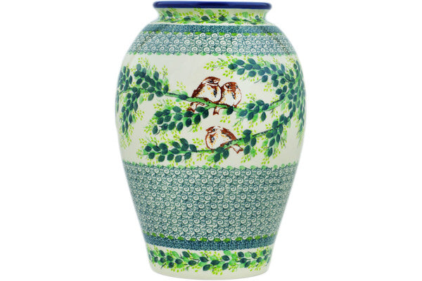This Resting Robins 12" Vase was handmade and hand decorated in Boleslawiec, Poland by skilled artisans according to old traditional methods. This is a Polish pottery Signature Unikat, which means that it has been hand painted with both sponges and brushes and it is signed by the artist who painted it. Unikat pieces are the most intricate works of art. Larger Unikat items take hours of very careful work to finish. This Polish stoneware is microwave, dishwasher, freezer, and oven safe up to 480°F. It does not contain lead or cadmium. It is part of the Resting Robins Collection.