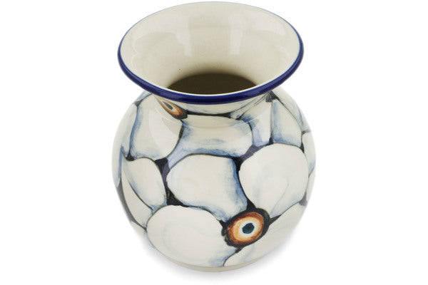 This Looking Poppy 4" Vase was handmade and hand decorated in Boleslawiec, Poland by skilled artisans according to old traditional methods. This is a Polish pottery Signature Unikat, which means that it has been hand painted with both sponges and brushes and it is signed by the artist who painted it. Unikat pieces are the most intricate works of art. Larger Unikat items take hours of very careful work to finish. This Polish stoneware is microwave, dishwasher, freezer, and oven safe up to 480°F. It does not contain lead or cadmium. It is part of the Looking Poppy Collection.