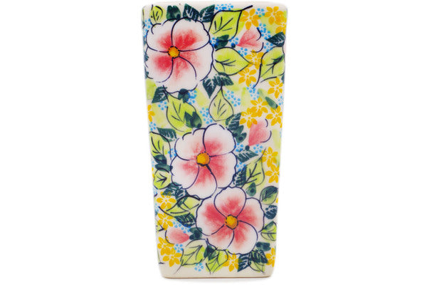 This Vibrant Vinca 6" Vase was handmade and hand decorated in Boleslawiec, Poland by skilled artisans according to old traditional methods. This is a Polish pottery Signature Unikat, which means that it has been hand painted with both sponges and brushes and it is signed by the artist who painted it. Unikat pieces are the most intricate works of art. Larger Unikat items take hours of very careful work to finish. This Polish stoneware is microwave, dishwasher, freezer, and oven safe up to 480°F. It does not contain lead or cadmium. It is part of the Vibrant Vinca Collection.