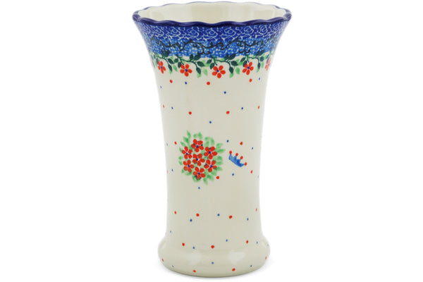 This Charming Prince 7" Vase was handmade and hand decorated in Boleslawiec, Poland by skilled artisans according to old traditional methods. This is a Polish pottery Signature Unikat, which means that it has been hand painted with both sponges and brushes and it is signed by the artist who painted it. Unikat pieces are the most intricate works of art. Larger Unikat items take hours of very careful work to finish. This Polish stoneware is microwave, dishwasher, freezer, and oven safe up to 480°F. It does not contain lead or cadmium. It is part of the Charming Prince Collection.