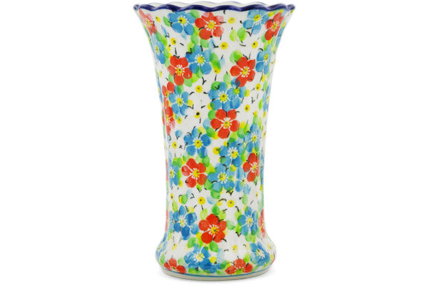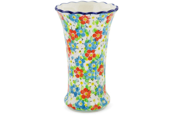 This Colorful Dizziness 7" Vase was handmade and hand decorated in Boleslawiec, Poland by skilled artisans according to old traditional methods. This is a Polish pottery Signature Unikat, which means that it has been hand painted with both sponges and brushes and it is signed by the artist who painted it. Unikat pieces are the most intricate works of art. Larger Unikat items take hours of very careful work to finish. This Polish stoneware is microwave, dishwasher, freezer, and oven safe up to 480°F. It does not contain lead or cadmium. It is part of the Colorful Dizziness Collection.