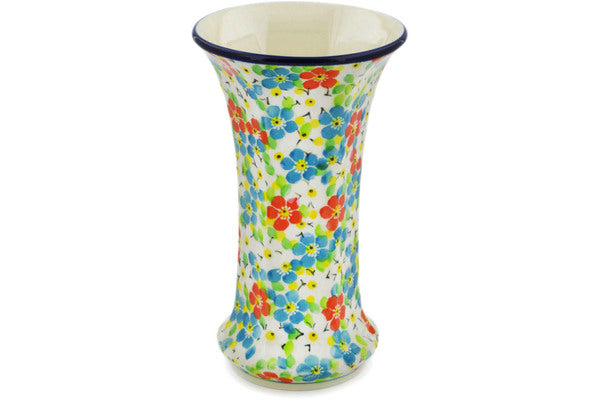 This Colorful Dizziness 7" Vase was handmade and hand decorated in Boleslawiec, Poland by skilled artisans according to old traditional methods. This is a Polish pottery Signature Unikat, which means that it has been hand painted with both sponges and brushes and it is signed by the artist who painted it. Unikat pieces are the most intricate works of art. Larger Unikat items take hours of very careful work to finish. This Polish stoneware is microwave, dishwasher, freezer, and oven safe up to 480°F. It does not contain lead or cadmium. It is part of the Colorful Dizziness Collection.