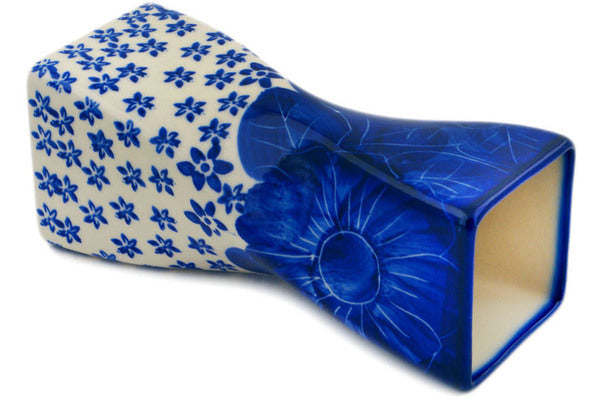 This Divine Cobalt 7" Vase was handmade and hand decorated in Boleslawiec, Poland by skilled artisans according to old traditional methods. This is a Polish pottery Signature Unikat, which means that it has been hand painted with both sponges and brushes and it is signed by the artist who painted it. Unikat pieces are the most intricate works of art. Larger Unikat items take hours of very careful work to finish. This Polish stoneware is microwave, dishwasher, freezer, and oven safe up to 480°F. It does not contain lead or cadmium. It is part of the Divine Cobalt Collection.