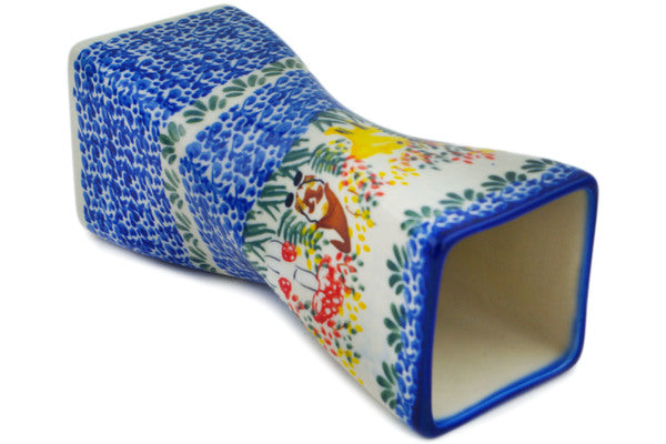 This Mushroom Love 7" Vase was handmade and hand decorated in Boleslawiec, Poland by skilled artisans according to old traditional methods. This is a Polish pottery Signature Unikat, which means that it has been hand painted with both sponges and brushes and it is signed by the artist who painted it. Unikat pieces are the most intricate works of art. Larger Unikat items take hours of very careful work to finish. This Polish stoneware is microwave, dishwasher, freezer, and oven safe up to 480°F. It does not contain lead or cadmium. It is part of the Mushroom Love Collection.