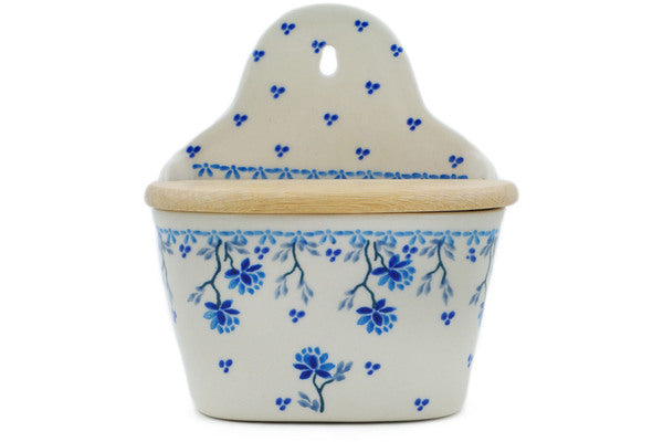 This Blue Grapevine 6" Wall Jar was handmade and hand decorated in Boleslawiec, Poland by skilled artisans according to old traditional methods. This Polish stoneware is microwave, dishwasher, freezer, and oven safe up to 480°F. It does not contain lead or cadmium. It is part of the Blue Grapevine Collection.