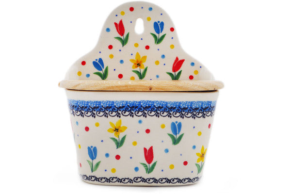This Full Bloom 6" Wall Jar was handmade and hand decorated in Boleslawiec, Poland by skilled artisans according to old traditional methods. This is a Polish pottery Signature Unikat, which means that it has been hand painted with both sponges and brushes and it is signed by the artist who painted it. Unikat pieces are the most intricate works of art. Larger Unikat items take hours of very careful work to finish. This Polish stoneware is microwave, dishwasher, freezer, and oven safe up to 480°F. It does not contain lead or cadmium. It is part of the Full Bloom Collection.