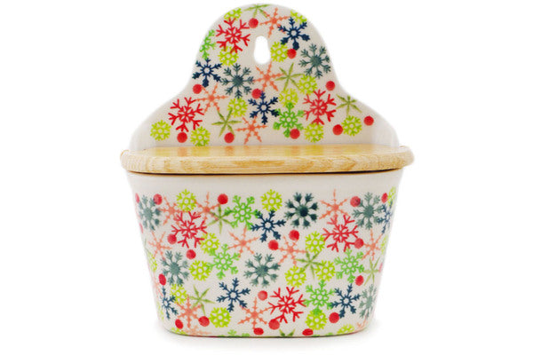 This Holly Jolly 6" Wall Jar was handmade and hand decorated in Boleslawiec, Poland by skilled artisans according to old traditional methods. This is a Polish pottery Signature Unikat, which means that it has been hand painted with both sponges and brushes and it is signed by the artist who painted it. Unikat pieces are the most intricate works of art. Larger Unikat items take hours of very careful work to finish. This Polish stoneware is microwave, dishwasher, freezer, and oven safe up to 480°F. It does not contain lead or cadmium. It is part of the Holly Jolly Collection.