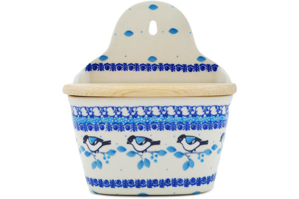 This Winter Sparrow 6" Wall Jar was handmade and hand decorated in Boleslawiec, Poland by skilled artisans according to old traditional methods. This Polish stoneware is microwave, dishwasher, freezer, and oven safe up to 480°F. It does not contain lead or cadmium. It is part of the Winter Sparrow Collection.