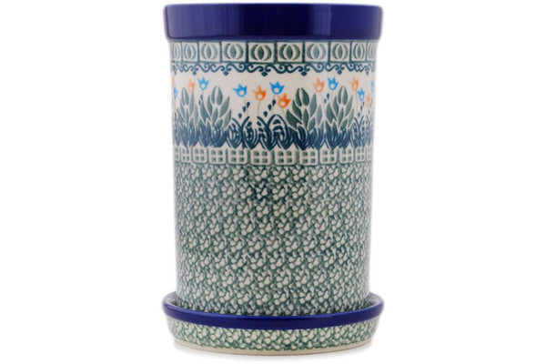 This Dancing Tulips 8" Wine Chill with Saucer was handmade and hand decorated in Boleslawiec, Poland by skilled artisans according to old traditional methods. This Polish stoneware is microwave, dishwasher, freezer, and oven safe up to 480°F. It does not contain lead or cadmium. It is part of the Dancing Tulips Collection.