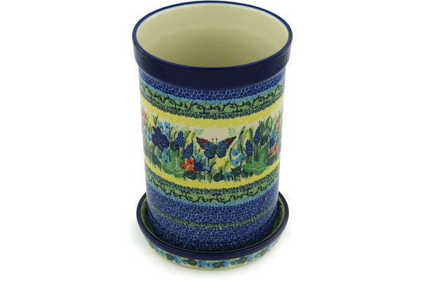 This Splendid Mariposa 8" Wine Chill with Saucer was handmade and hand decorated in Boleslawiec, Poland by skilled artisans according to old traditional methods. This is a Polish pottery Signature Unikat, which means that it has been hand painted with both sponges and brushes and it is signed by the artist who painted it. Unikat pieces are the most intricate works of art. Larger Unikat items take hours of very careful work to finish. This Polish stoneware is microwave, dishwasher, freezer, and oven safe up to 480°F. It does not contain lead or cadmium. It is part of the Splendid Mariposa Collection.