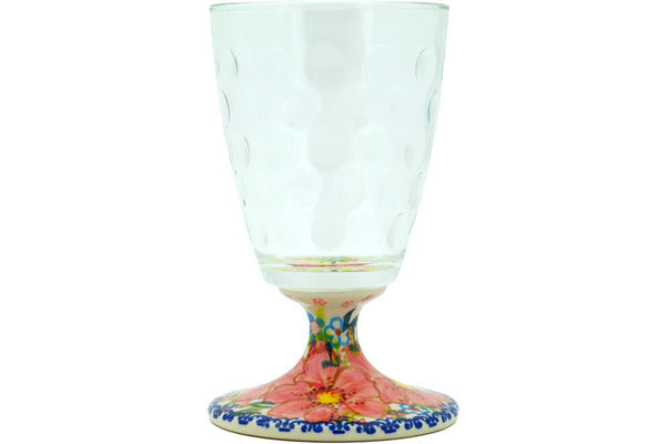 This Aster 11 oz Wine Glass was handmade and hand decorated in Boleslawiec, Poland by skilled artisans according to old traditional methods. This is a Polish pottery Signature Unikat, which means that it has been hand painted with both sponges and brushes and it is signed by the artist who painted it. Unikat pieces are the most intricate works of art. Larger Unikat items take hours of very careful work to finish. This Polish stoneware is microwave, dishwasher, freezer, and oven safe up to 480°F. It does not contain lead or cadmium. It is part of the Aster Collection.