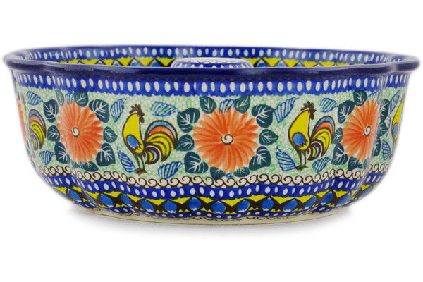 This Summer Rooster 10" Cake Mould was handmade and hand decorated in Boleslawiec, Poland by skilled artisans according to old traditional methods. This is a Polish pottery Signature Unikat, which means that it has been hand painted with both sponges and brushes and it is signed by the artist who painted it. Unikat pieces are the most intricate works of art. Larger Unikat items take hours of very careful work to finish. This Polish stoneware is microwave, dishwasher, freezer, and oven safe up to 480°F. It does not contain lead or cadmium. It is part of the Summer Rooster Collection.
