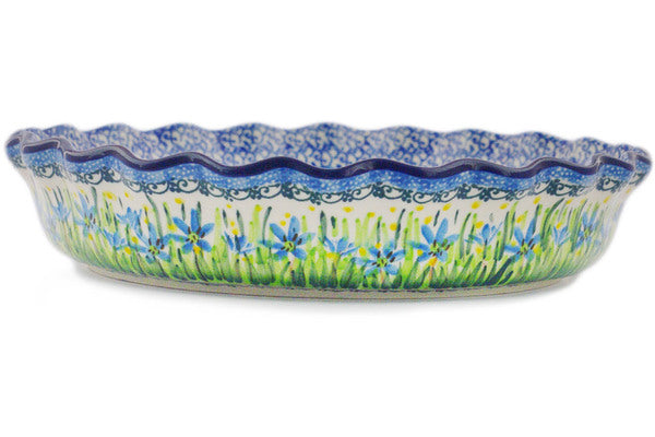 This Spring Morning 10" Fluted Pie Dish was handmade and hand decorated in Boleslawiec, Poland by skilled artisans according to old traditional methods. This is a Polish pottery Signature Unikat, which means that it has been hand painted with both sponges and brushes and it is signed by the artist who painted it. Unikat pieces are the most intricate works of art. Larger Unikat items take hours of very careful work to finish. This Polish stoneware is microwave, dishwasher, freezer, and oven safe up to 480°F. It does not contain lead or cadmium. It is part of the Spring Morning Collection.