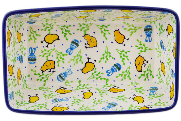 This Easter Day 8" Loaf Pan 8" was handmade and hand decorated in Boleslawiec, Poland by skilled artisans according to old traditional methods. This Polish stoneware is microwave, dishwasher, freezer, and oven safe up to 480°F. It does not contain lead or cadmium. It is part of the Easter Day Collection.