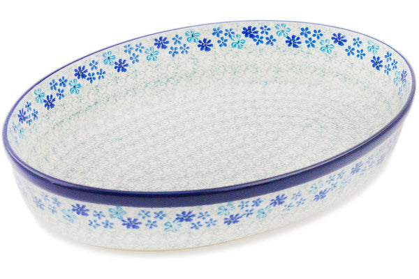 This Winter Floral 12" Oval Baker was handmade and hand decorated in Boleslawiec, Poland by skilled artisans according to old traditional methods. This Polish stoneware is microwave, dishwasher, freezer, and oven safe up to 480°F. It does not contain lead or cadmium. It is part of the Winter Floral Collection.