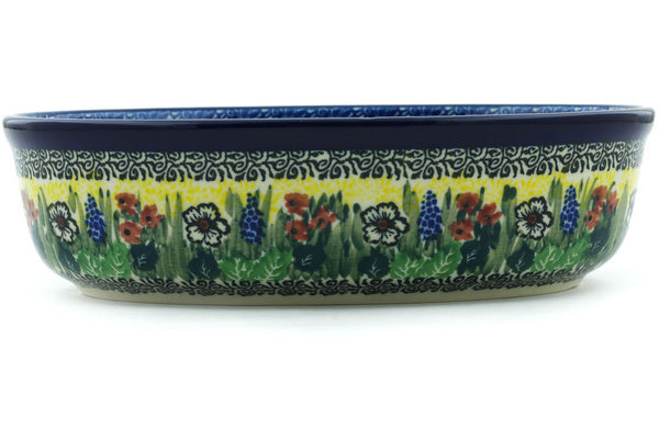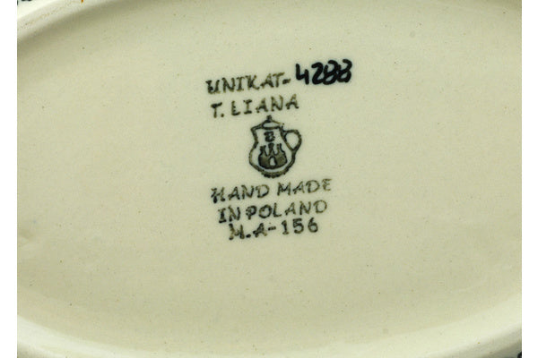 This Copper Rose Meadow 8" Oval Baker was handmade and hand decorated in Boleslawiec, Poland by skilled artisans according to old traditional methods. This is a Polish pottery Signature Unikat, which means that it has been hand painted with both sponges and brushes and it is signed by the artist who painted it. Unikat pieces are the most intricate works of art. Larger Unikat items take hours of very careful work to finish. This Polish stoneware is microwave, dishwasher, freezer, and oven safe up to 480°F. It does not contain lead or cadmium. It is part of the Copper Rose Meadow Collection.