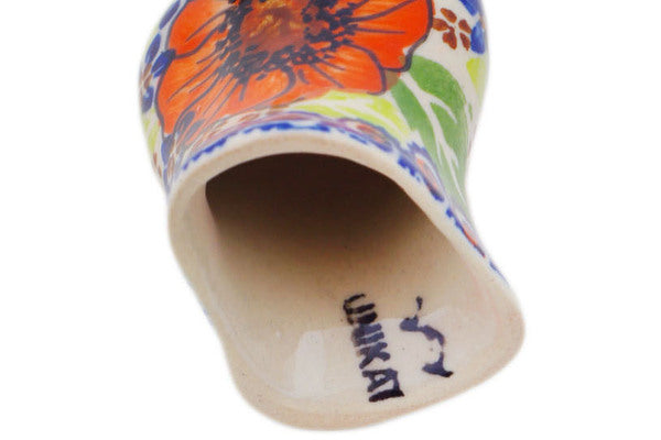 This Orange Zinnia 3" Pie Bird was handmade and hand decorated in Boleslawiec, Poland by skilled artisans according to old traditional methods. This is a Polish pottery Signature Unikat, which means that it has been hand painted with both sponges and brushes and it is signed by the artist who painted it. Unikat pieces are the most intricate works of art. Larger Unikat items take hours of very careful work to finish. This Polish stoneware is microwave, dishwasher, freezer, and oven safe up to 480°F. It does not contain lead or cadmium. It is part of the Orange Zinnia Collection.