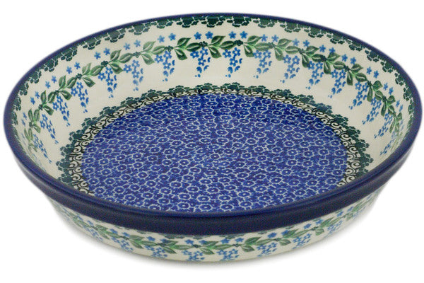 This Wisteria 10" Pie Dish was handmade and hand decorated in Boleslawiec, Poland by skilled artisans according to old traditional methods. This Polish stoneware is microwave, dishwasher, freezer, and oven safe up to 480°F. It does not contain lead or cadmium. It is part of the Wisteria Collection.