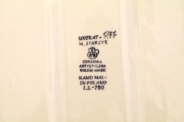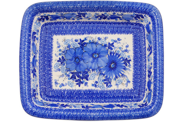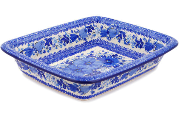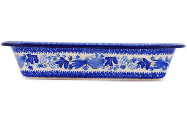 This Blue Wildflower Patch 14" Rectangular Baker was handmade and hand decorated in Boleslawiec, Poland by skilled artisans according to old traditional methods. This is a Polish pottery Signature Unikat, which means that it has been hand painted with both sponges and brushes and it is signed by the artist who painted it. Unikat pieces are the most intricate works of art. Larger Unikat items take hours of very careful work to finish. This Polish stoneware is microwave, dishwasher, freezer, and oven safe up to 480°F. It does not contain lead or cadmium. It is part of the Blue Wildflower Patch Collection.