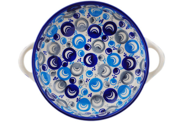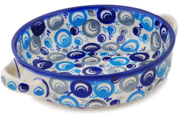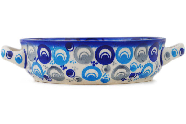 Round Baker with Handles 8" Blue Peacock Eye Theme