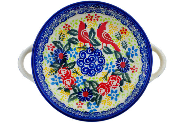 Round Baker with Handles 8" Lovely Red Birds Theme UNIKAT