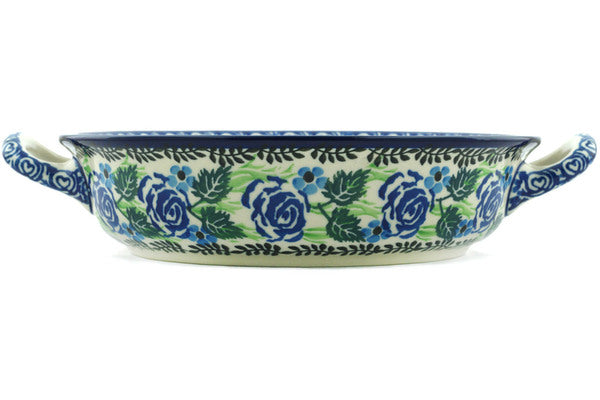 Round Baker with Handles Medium Blue Rose Garden Theme